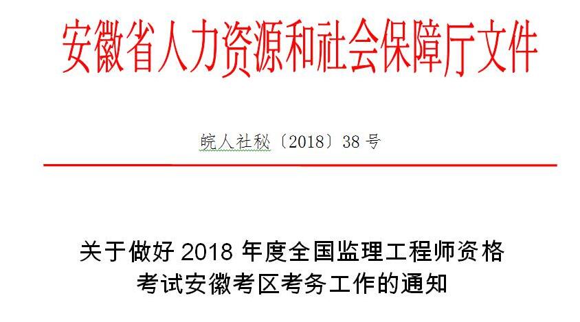 关于做好2018年度全国监理工程师资格考试安徽考区考务工作的通知