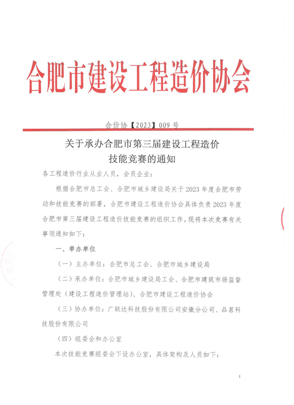 关于承办合肥市第三届建设工程造价技能竞赛的通知