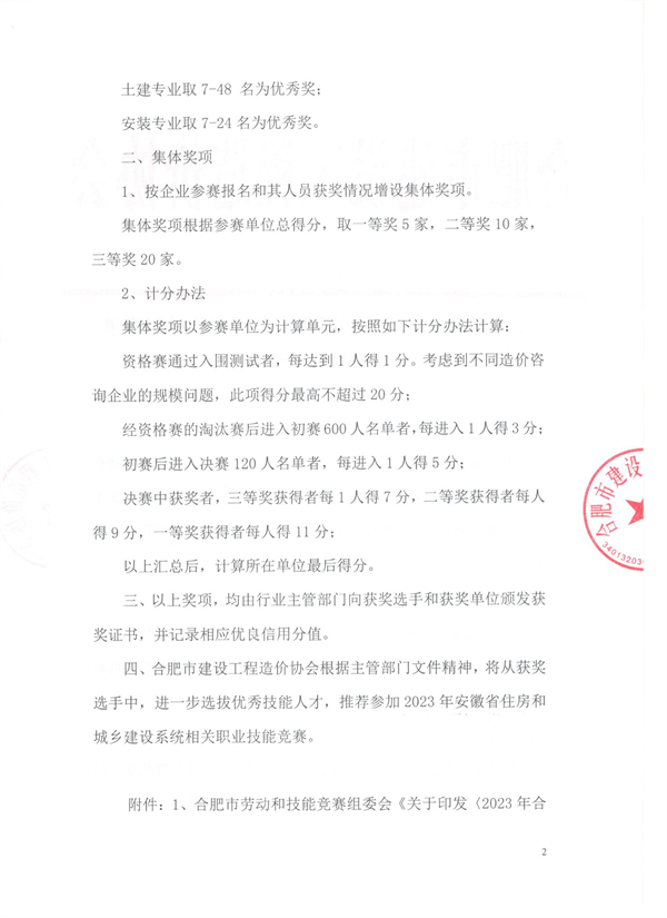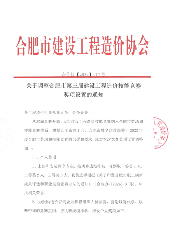关于调整合肥市第三届建设工程造价技能竞赛奖项设置的通知